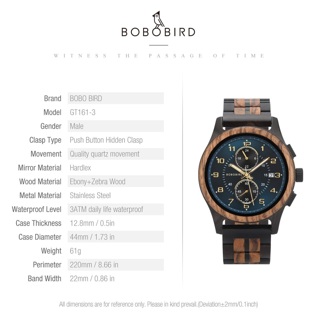 ✔ Marca Bobo Bird – Reconhecida mundialmente pela qualidade e inovação em relógios de madeira.