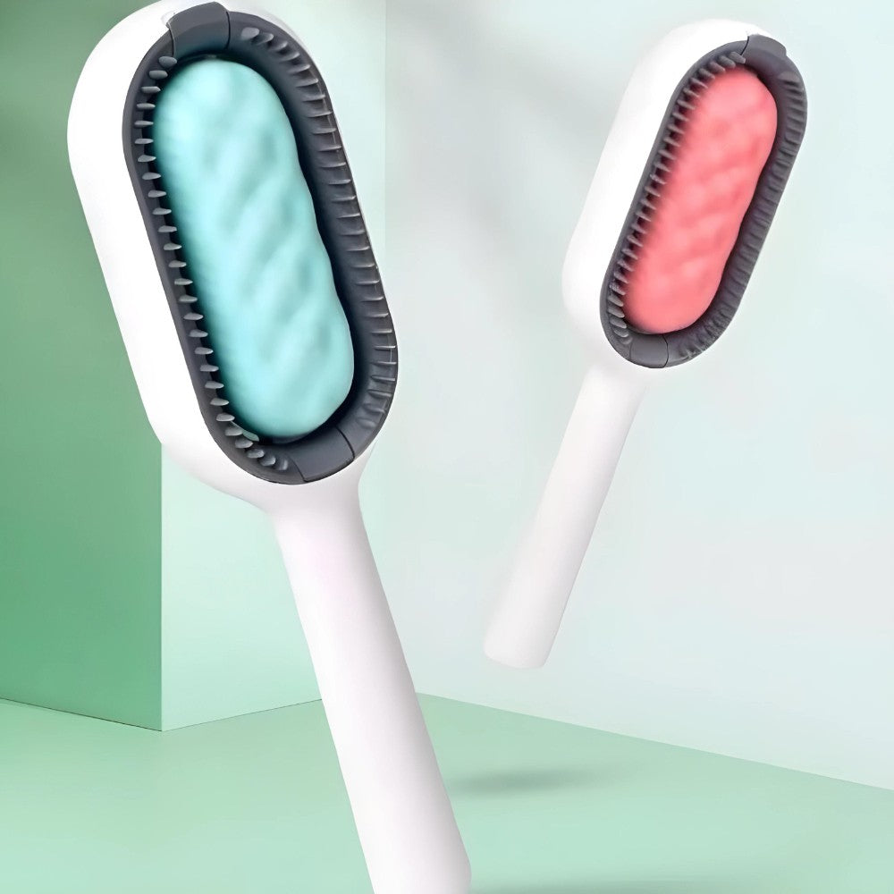 A Escova Pet 4 em 1 é ideal para cães, gatos e até coelhos, com pelos curtos, médios ou longos. Com 54 pinos de borracha macios, ela remove os pelos soltos, massageia e ainda pode ser usada com lenços umedecidos para um banho seco rápido e eficiente.